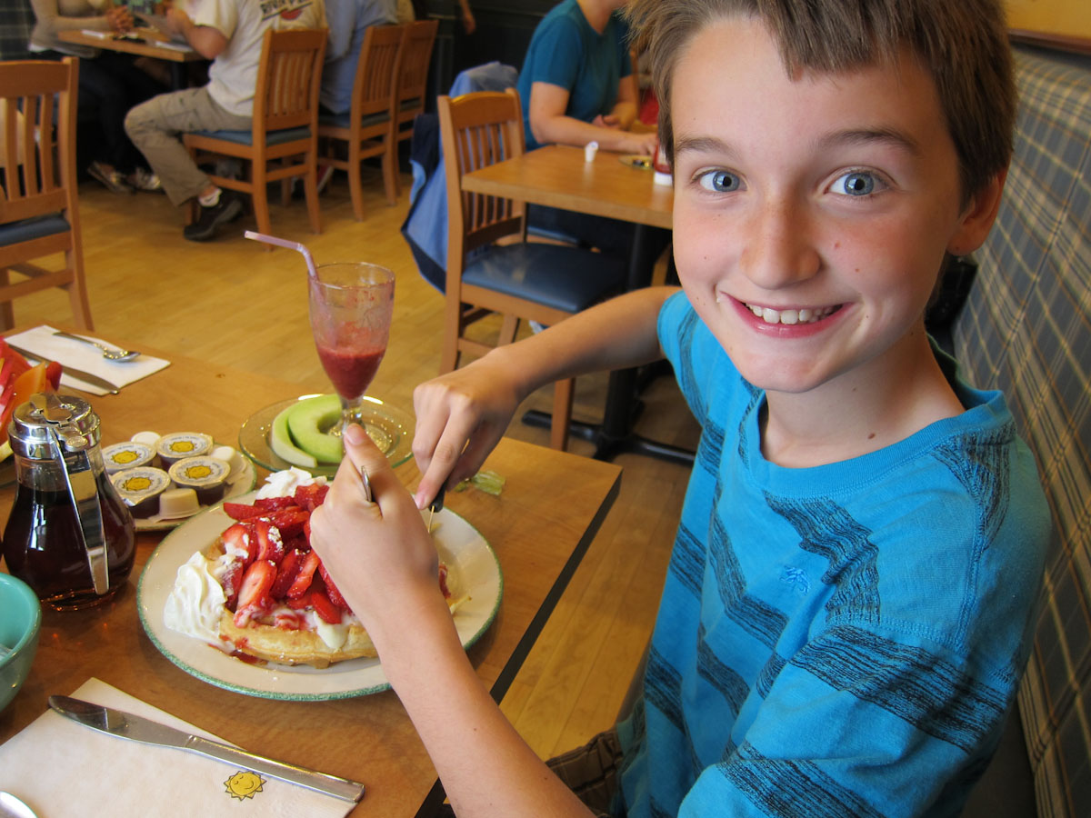 Jackson enjoying his waffles at Cora’s. Yum.